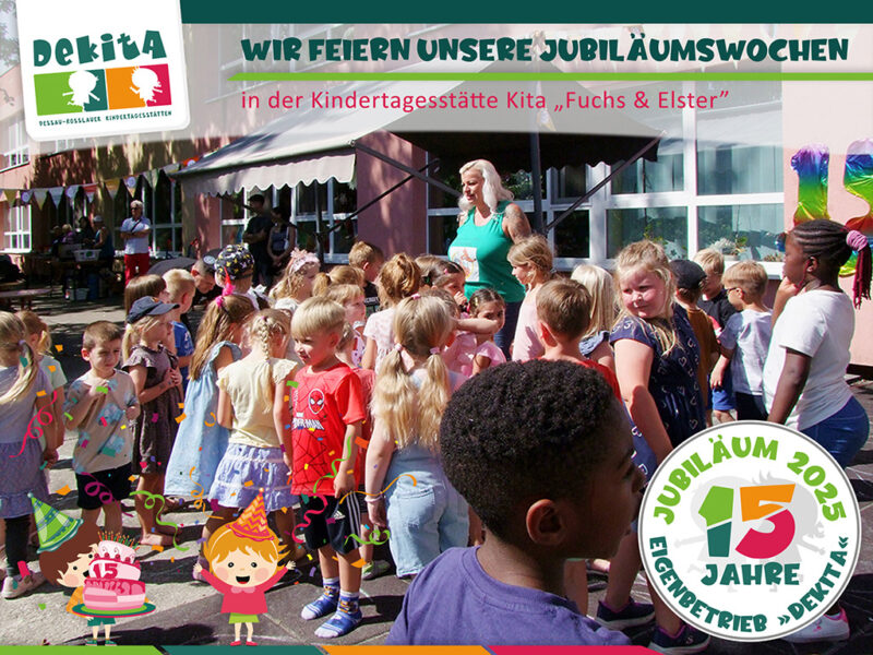 22 August, 2025 Kita „Fuchs und Elster“ NewsDer Eigenbetrieb DeKiTa ist ein Unternehmen der Stadt Dessau-Roßlau und hat in seiner Trägerschaft 22 Kindertageseinrichtungen, einen Jugendklub und das „Spielmobil“, verteilt auf das gesamte Stadtgebiet von Dessau-Roßlau und deren Vororte.