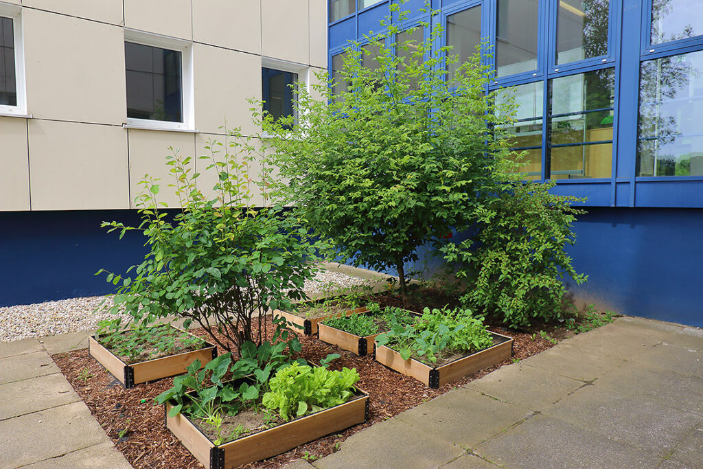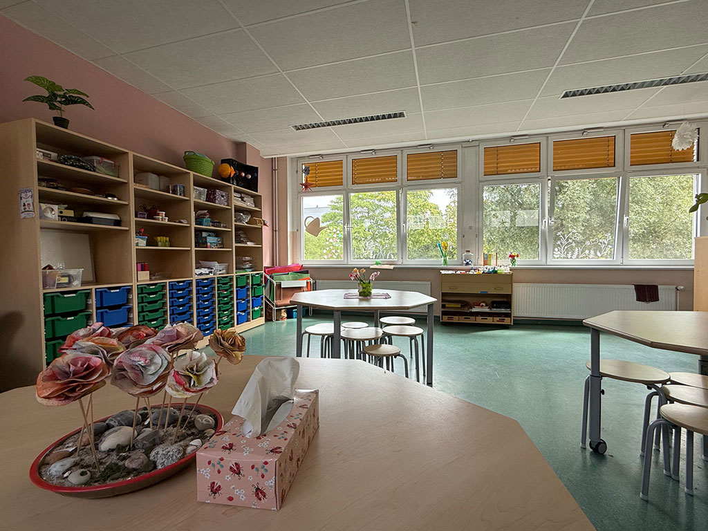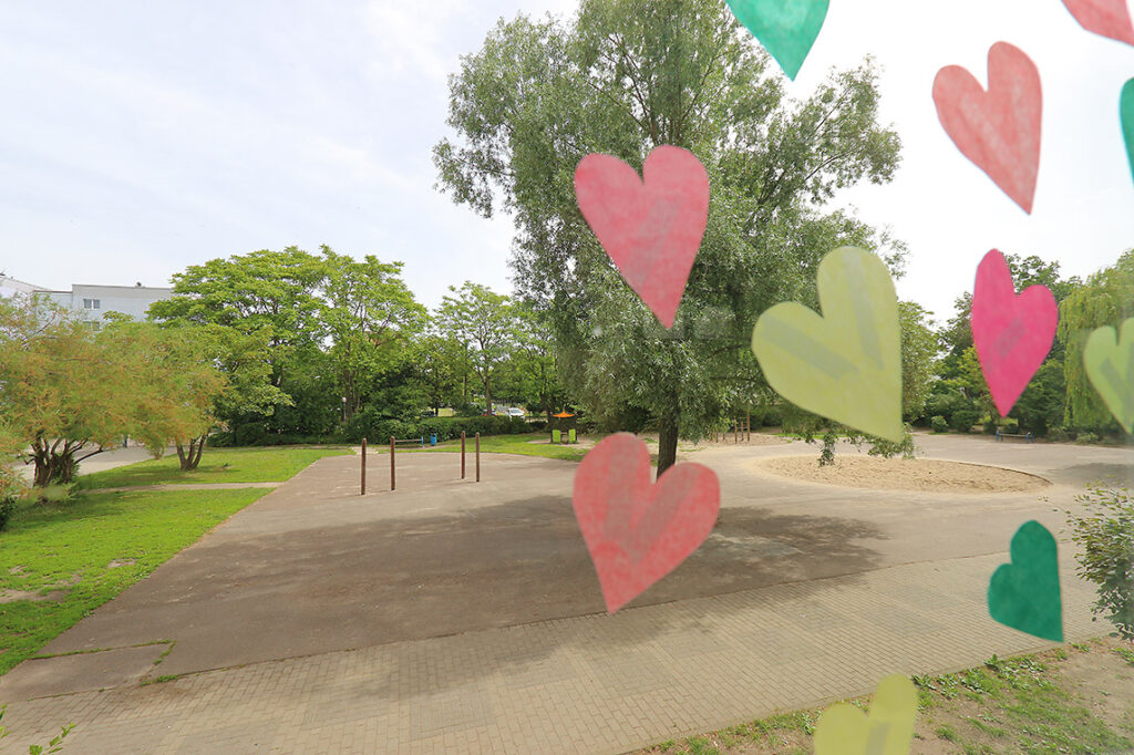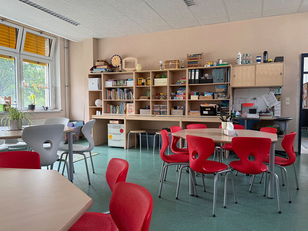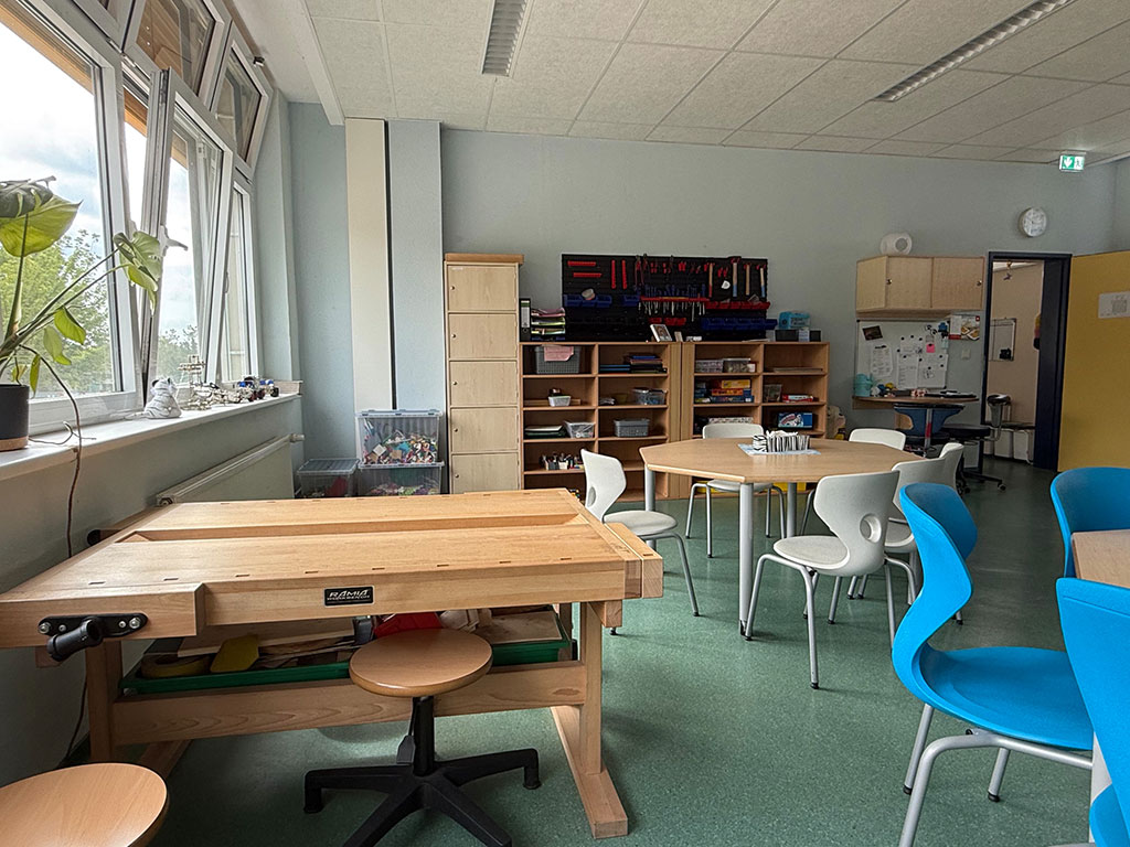 Unser Hort ist im Gebäude der Grundschule „Kreuzbergstraße“ integriert. Zu den fünf individuellen und themenbezogenen Horträumen und einer Kinderküche verfügen wir über zwei große Freiflächen, auf denen wir uns aktiv bewegen können. Zusätzlich steht uns ein kleiner Innenhof zur Verfügung, den wir individuell jährlich neu gestalten – beispielsweise durch selbsthergestellte Hochbeete, die wir mit Obst und Gemüse bepflanzen.
