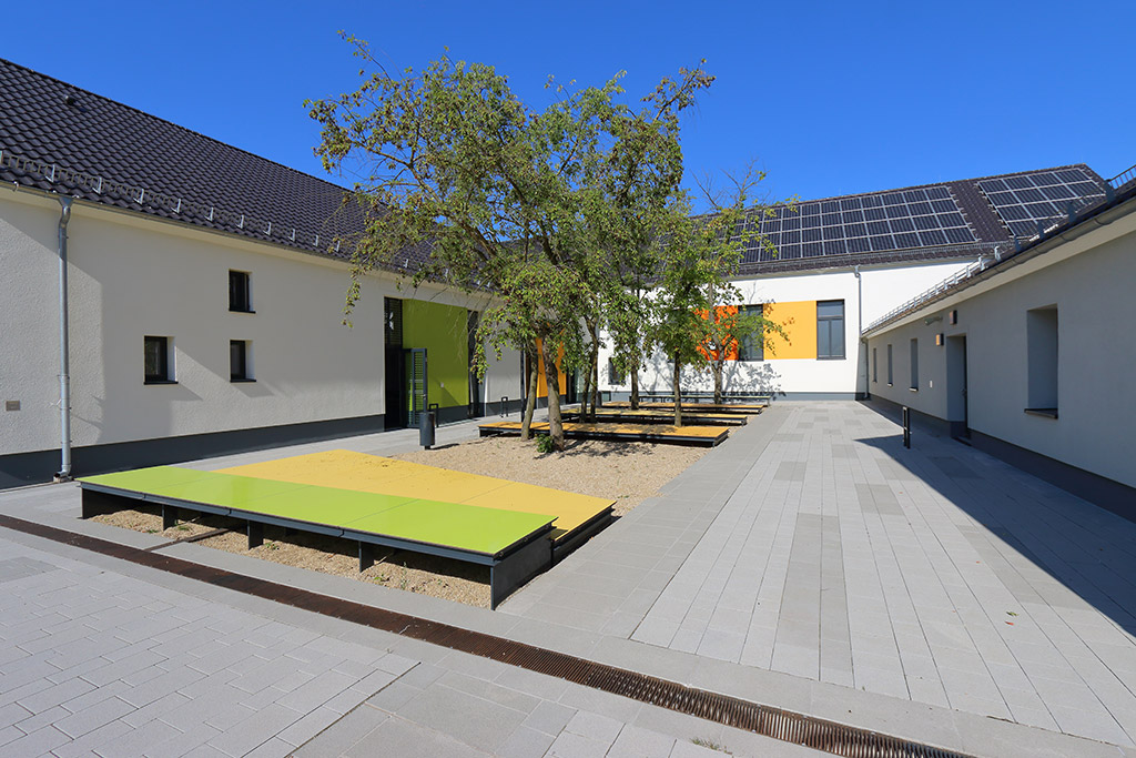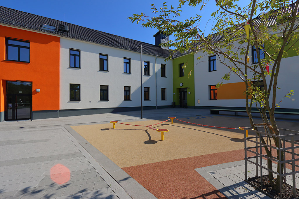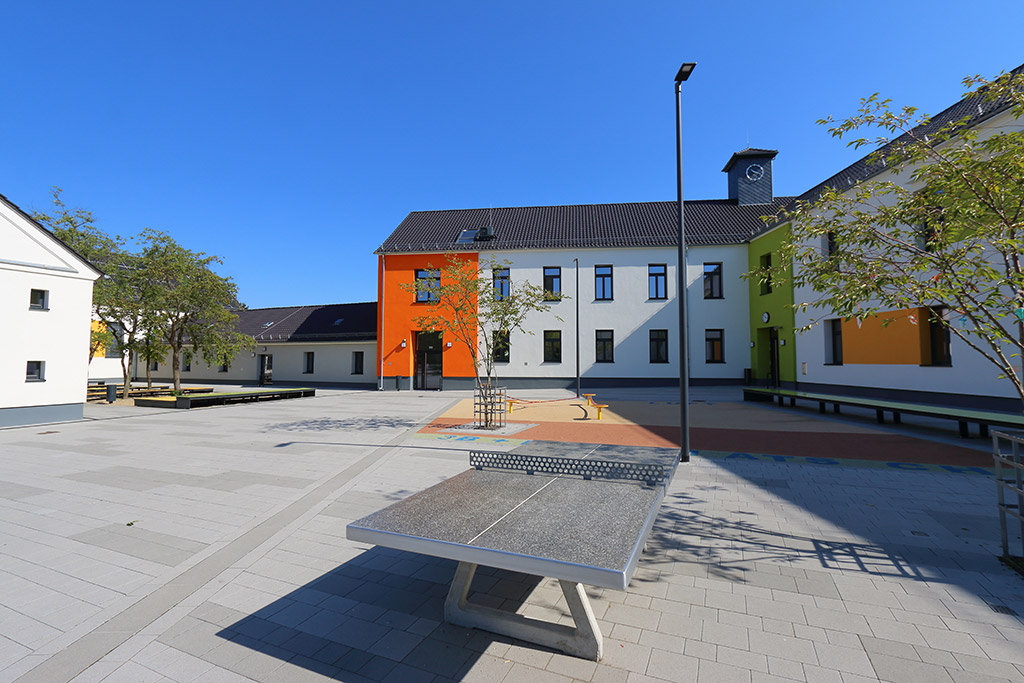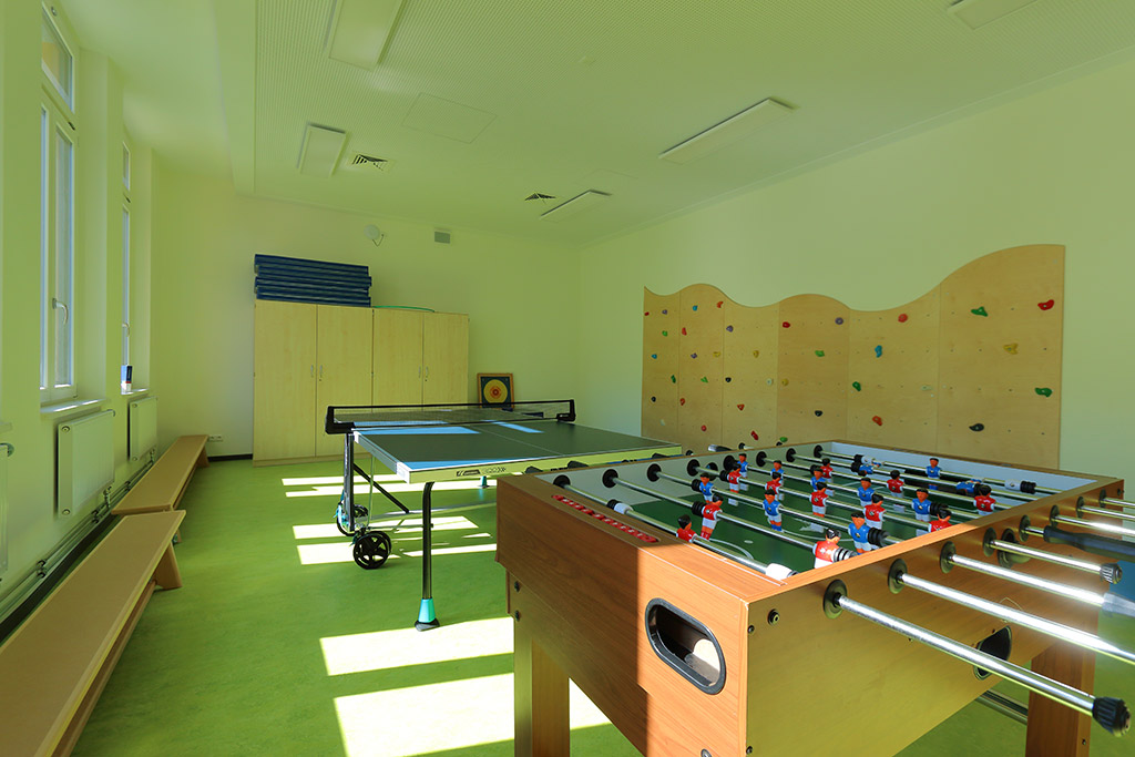 Für den kindlichen Bewegungsdrang und das Spielen an der frischen Luft, steht uns ein großes Außengelände zur Verfügung, welches so oft wie möglich genutzt wird. Den Kindern werden unterschiedliche Sportarten wie Fußball, Basketball oder Tischtennis sowie verschiedene Fahrzeuge und Klettergerüste angeboten – dazu reine Natur zum Genießen, jede Menge Abwechslung und Spielspaß.