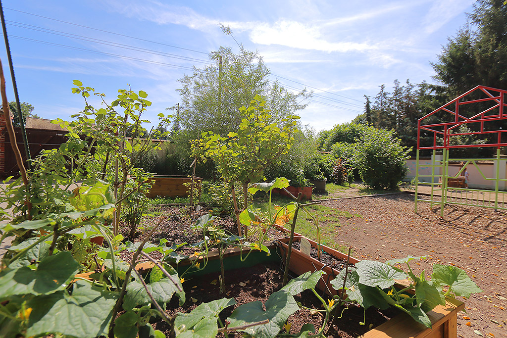 Die ländliche Lage unserer Kindertageseinrichtung, in unmittelbarer Nähe zum Wald, unterstützt unseren konzeptionellen Schwerpunkt – naturnahe Kita. Auf ca. 1000 Quadratmeter Freifläche finden die Kinder reichliche Möglichkeiten, ihren Bewegungsdrang und Forschergeist nachzugehen und vielfältige Erfahrungen mit belebter und unbelebter Natur zu machen.